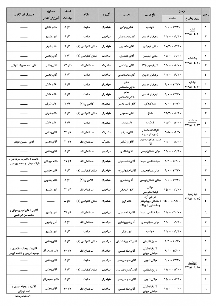 برنامه هفتگی از ۱۳۹۷/۰۵/۲۰ تا ۱۳۹۷/۰۵/۲۵ نوشته شده توسط خانم یعقوبی | برنامه هفتگی | 0 | برنامه هفتگی از ۱۳۹۷/۰۵/۲۰ تا ۱۳۹۷/۰۵/۲۵