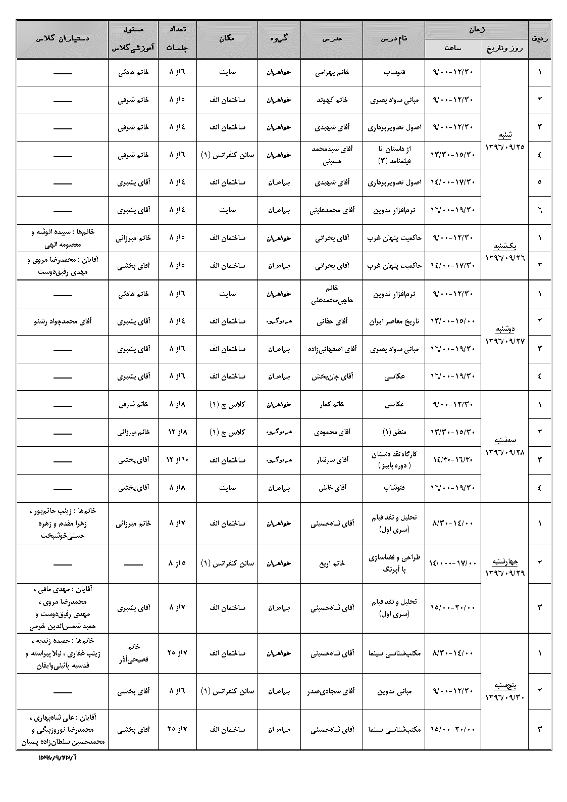 برنامه هفتگی از ۱۳۹۶/۹/۲۵ تا ۱۳۹۶/۹/۳۰ نوشته شده توسط خانم یعقوبی | برنامه هفتگی | 0 | برنامه هفتگی از ۱۳۹۶/۹/۲۵ تا ۱۳۹۶/۹/۳۰