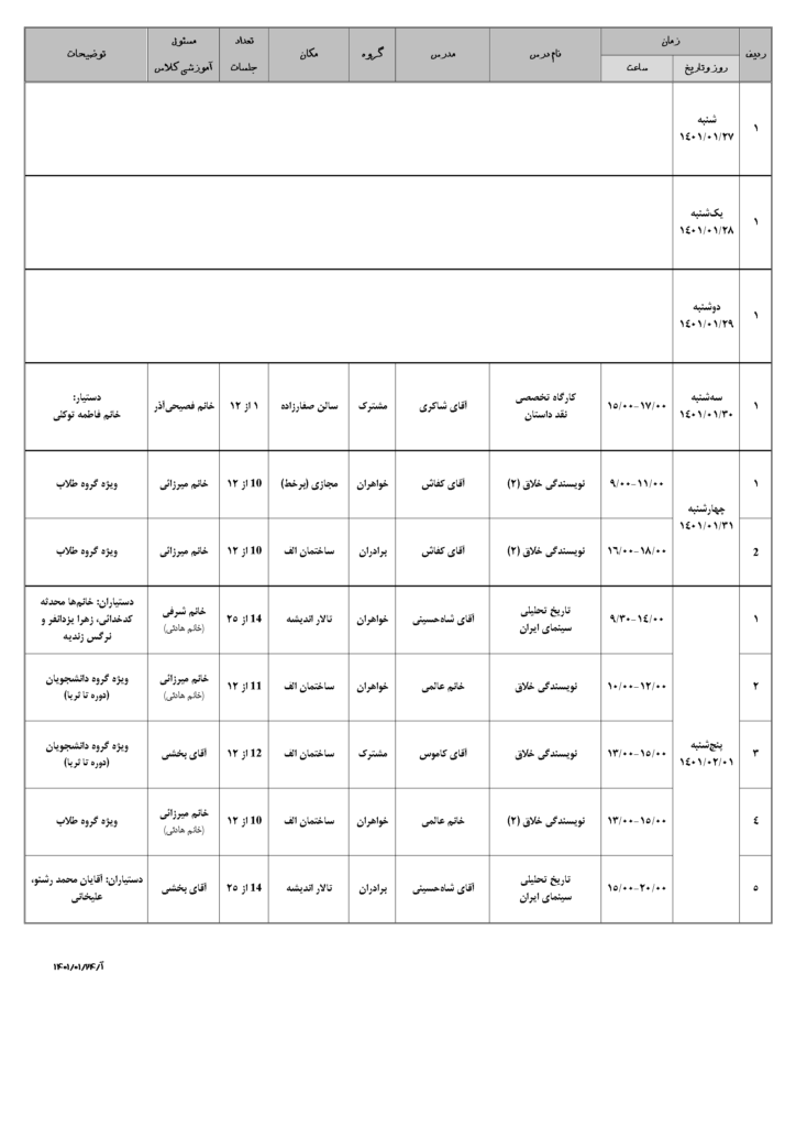 نوشته شده توسط خانم یعقوبی | برنامه هفتگی | 0 |