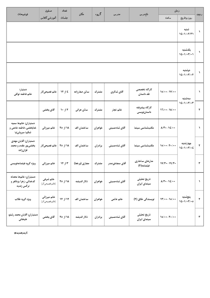 نوشته شده توسط خانم یعقوبی | برنامه هفتگی | 0 |